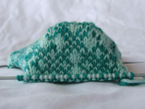 I’ve just started the gusset. I’m not entirely sure it’ll work out the way I want it to, but we’ll see what happens.