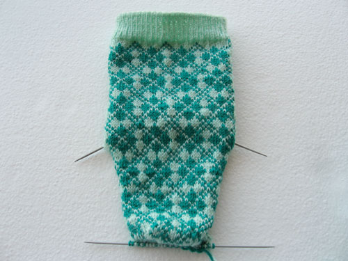 So as soon as I finished a sock with a stranded stitch pattern, I switched to a sock with stranded colorwork.