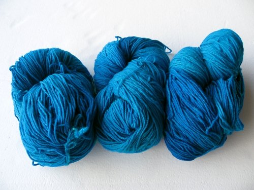 Tess’ Designer Yarns Superwash Merino. I can’t get this to photograph properly – it’s a slightly greener and darker turquoise in person. It’s one of my favorite colors in the world, so of course I had to buy it. It’ll be a cardigan eventually, perhaps a cabled one (hence the three skeins instead of two).