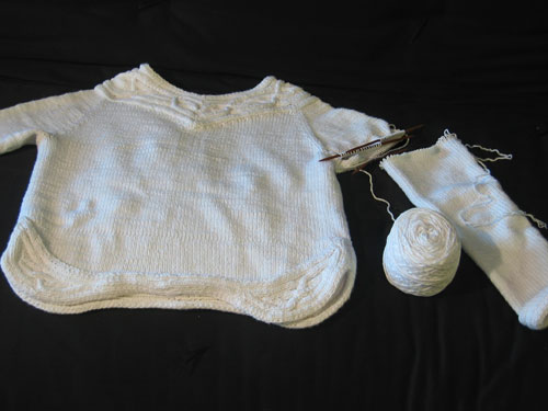 I feel like I’ve passed some sort of milestone, or gone through some rite of passage, since this is the first major project I’ve ever frogged. And like many milestones, this triggered a number of different emotions. I’m sad and disappointed that the sweater didn’t work out like I’d hoped. But it definitely wasn’t a complete waste of time. The cables were very much a joy to knit. And as disastrous as the sleeves were, they were actually a pretty good exercise for me… I have a better idea on how to rework things now, so I’m grateful for that experience.